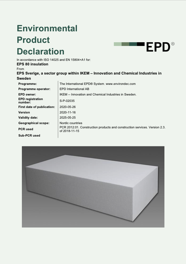Informationsmaterial EPS Sveriges miljövarudeklaration Environmental Product Declaration 23 mars 2023 Rapport Konstruktioner med bärande EPS 20 mars 2023 Bygg säkert med cellplast 20 mars 2023 EPS i tak 20 mars 2023 EPS i väggar 20 mars 2023 Broschyr EPS i grund och mark 20 mars 2023 Tilläggsisolering med EPS 20 mars 2023 EPS Sverige Om EPS Tillverkning av EPS ✖ Om materialet EPS ✖ Historik ✖ EPS Sverige söker ny verksamhetsansvarig ✖ ✖ Byggapplikationer PEPS - beräkningsprogram ✖ EPS i anläggningsarbeten ✖ EPS i grund och mark ✖ EPS i grundelement ✖ EPS i väggar ✖ EPS i tak EPS i tak ✖ ✖ EPS som tillläggsisolering ✖ Brandegenskaper EPS Bygg säkert med cellplast ✖ ✖ Bygg säkert med cellplast ✖ Ansvarsfull hantering av EPS på byggarbetsplatsen Bygg säkert med cellplast ✖ ✖ ✖ Förpackningar ✖ EPS och miljön Återvinning av EPS ✖ Miljövarudeklaration - EPD ✖ OCS - Operation Clean Sweep ✖ SCIP – Sluta cirkeln för industriell plast ✖ ✖ Informationsmaterial ✖ Om EPS Sverige ✖